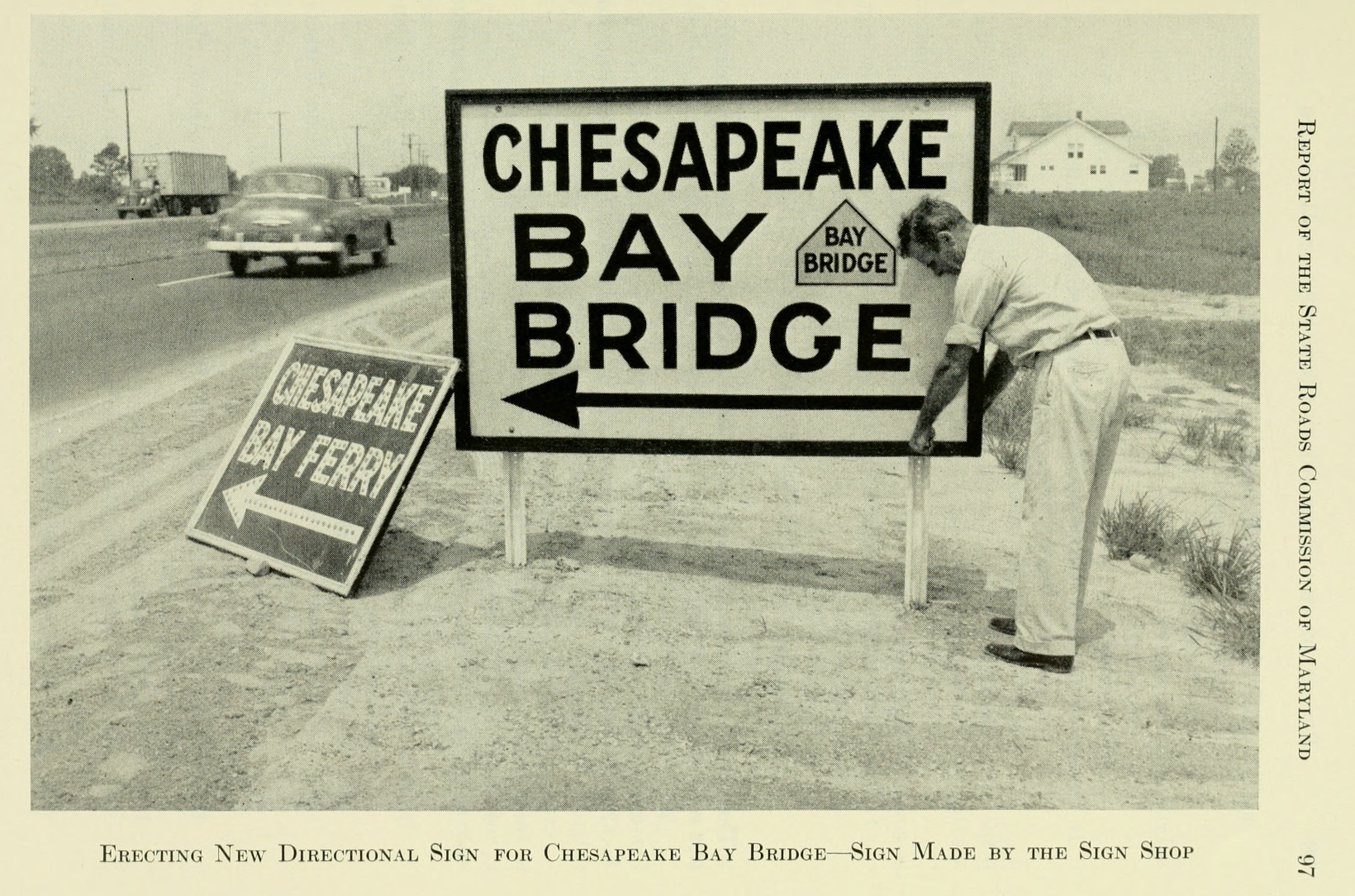 Seeking to literally bridge the gap between the Western Shore and the Eastern Shore, consideration of a fixed crossing over the Chesapeake Bay dates back to at least 1926. Maryland's 1935 Ten-Year Highway Construction Program describes the potential implications for unified trade (pages 32-33, emphasis added):