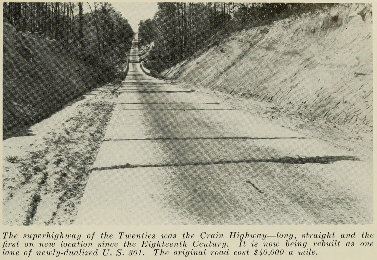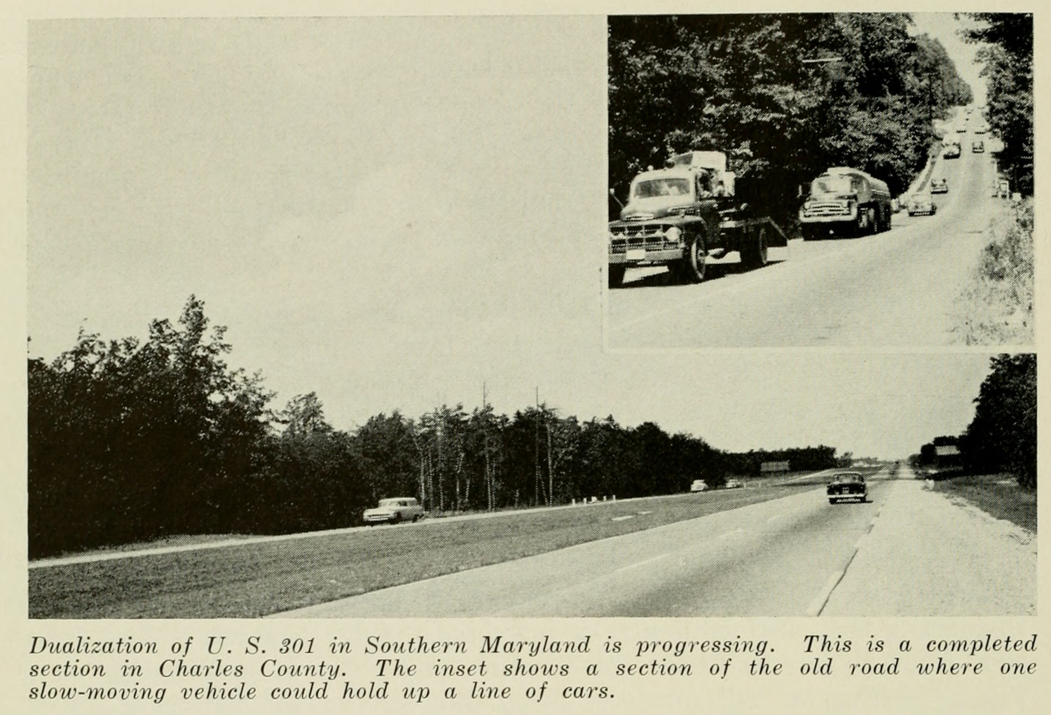 Some concerns remained about the southernmost stretches of the Crain Highway, between La Plata and Morgantown, as described in the 1938 study for the bridge (page 18):