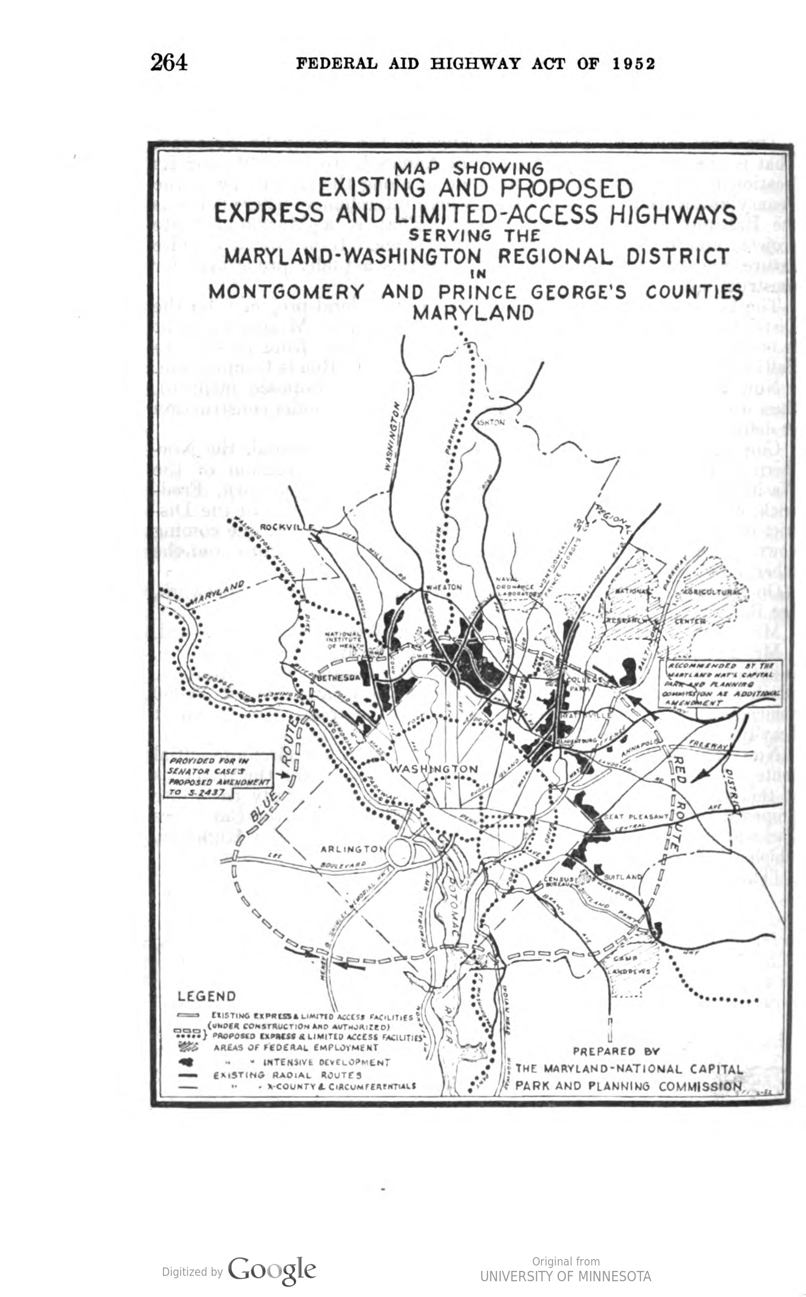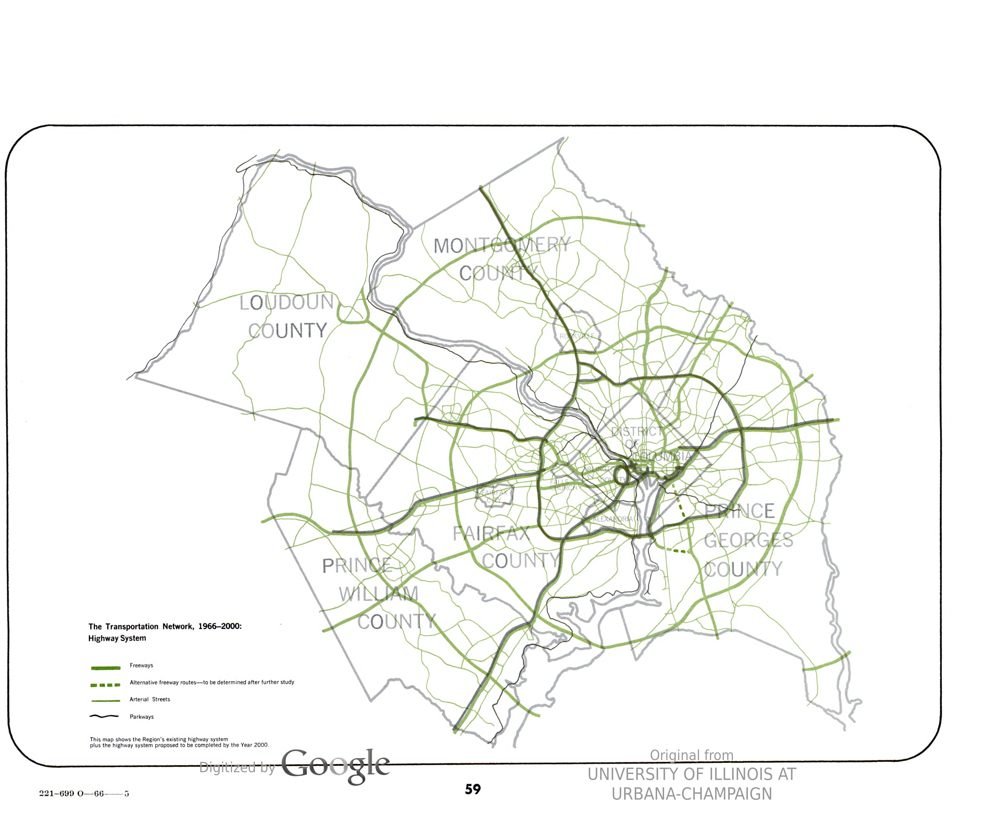 In the 1950 document, Regional Aspects of the Comprehensive Plan, produced by the National Capital Park and Planning Commission, another reference to the freeway was made (page 34, emphasis added):