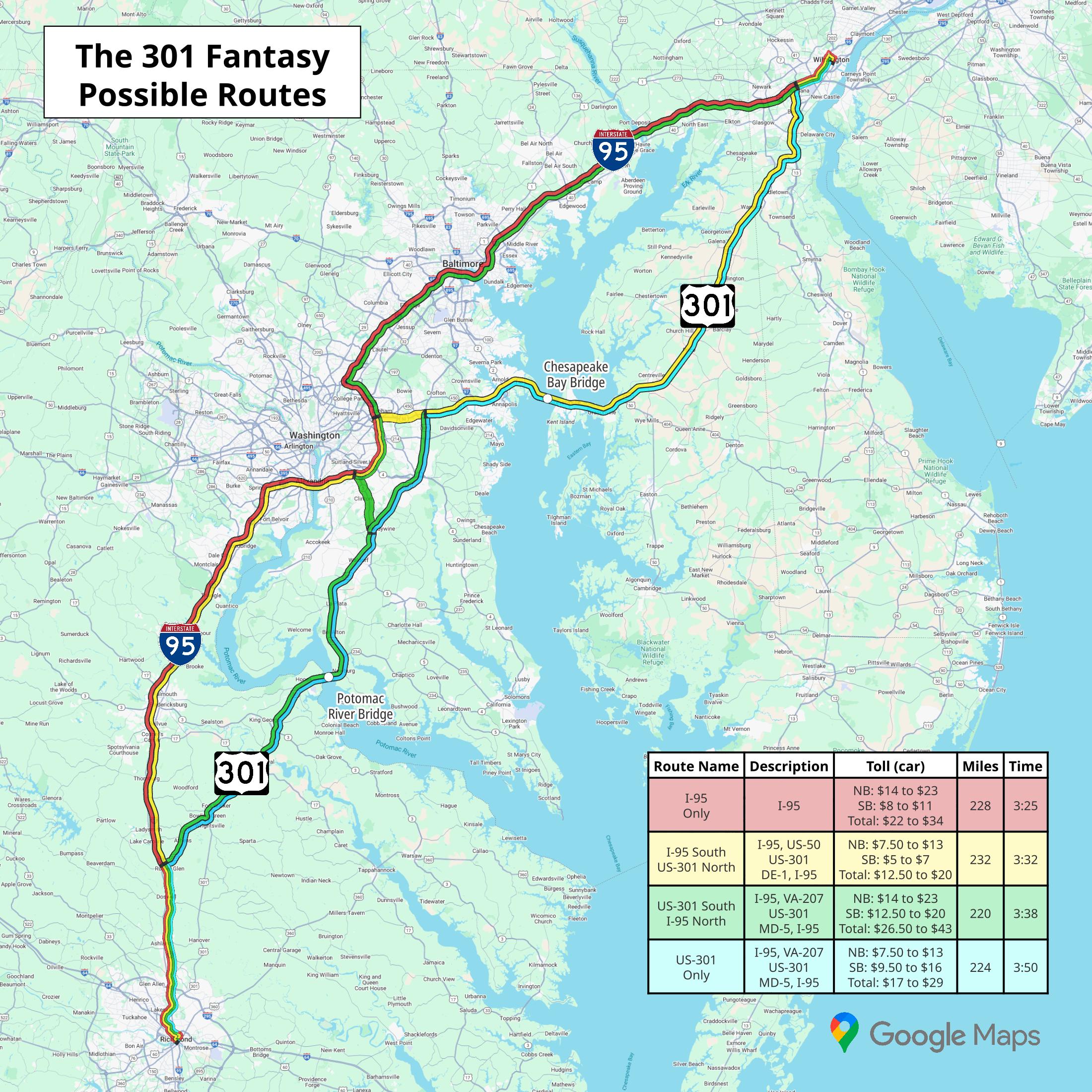 US-301 Only | I-95, VA-207 US-301 DE-1, I-95 |